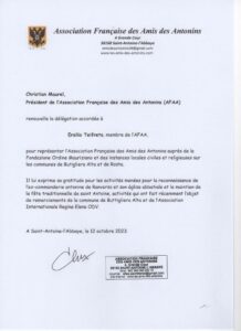 Una pergamena “𝑝𝑒𝑟 𝑙’𝑖𝑚𝑝𝑒𝑔𝑛𝑜 𝑎𝑝𝑝𝑎𝑠𝑠𝑖𝑜𝑛𝑎𝑡𝑜 𝑒 𝑐𝑜𝑠𝑡𝑎𝑛𝑡𝑒 𝑛𝑒𝑙𝑙𝑎 𝑝𝑟𝑜𝑚𝑜𝑧𝑖𝑜𝑛𝑒 𝑑𝑒𝑙𝑙𝑎 𝑐𝑢𝑙𝑡𝑢𝑟𝑎 𝑒 𝑛𝑒𝑙𝑙𝑎 𝑣𝑎𝑙𝑜𝑟𝑖𝑧𝑧𝑎𝑧𝑖𝑜𝑛𝑒 𝑑𝑒𝑙 𝑝𝑎𝑡𝑟𝑖𝑚𝑜𝑛𝑖𝑜 𝑑𝑒𝑙 𝑡𝑒𝑟𝑟𝑖𝑡𝑜𝑟𝑖𝑜, 𝑐𝑜𝑛 𝑝𝑎𝑟𝑡𝑖𝑐𝑜𝑙𝑎𝑟𝑒 𝑑𝑒𝑑𝑖𝑧𝑖𝑜𝑛𝑒 𝑎𝑙𝑙𝑎 𝑃𝑟𝑒𝑐𝑒𝑡𝑡𝑜𝑟𝑖𝑎 𝑑𝑖 𝑆𝑎𝑛𝑡’𝐴𝑛𝑡𝑜𝑛𝑖𝑜 𝑑𝑖 𝑅𝑎𝑛𝑣𝑒𝑟𝑠𝑜, 𝑙𝑢𝑜𝑔𝑜 𝑑𝑖 𝑚𝑒𝑚𝑜𝑟𝑖𝑎 𝑒 𝑑𝑖 𝑏𝑒𝑙𝑙𝑒𝑧𝑧𝑎 𝑑𝑎 𝑙𝑢𝑖 𝑠𝑎𝑝𝑖𝑒𝑛𝑡𝑒𝑚𝑒𝑛𝑡𝑒 𝑐𝑢𝑠𝑡𝑜𝑑𝑖𝑡𝑜 𝑒 𝑓𝑎𝑡𝑡𝑜 𝑐𝑜𝑛𝑜𝑠𝑐𝑒𝑟𝑒”.